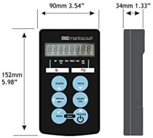 7 digit LCD Handheld display voor loadcellen en strain gauges, voeding 2x AA batterijen, Keys “on/off”, range select, “peak/valley hold”, and “gross/nett”.
